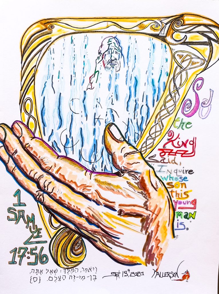 Goliath’s head is again mentioned in the middle of the final four verses. It seems oddly placed and almost disconnected from the rest of the narrative. During the battle, as David was going out to meet the Philistine, Saul asked whose son David was.