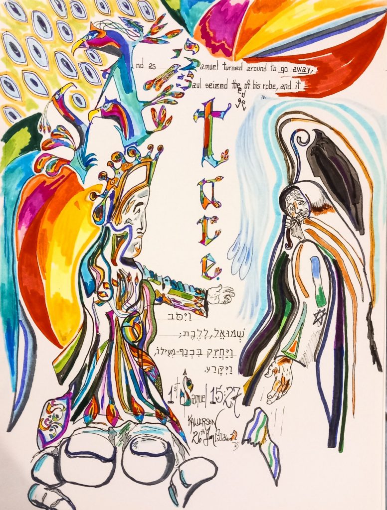 vayomer elav shemuel qara Yehovah eth mamlekhuth Yisrael mealekha ha’yom – “And he said unto him, Samuel, ‘He rent, Yehovah, kingdom Israel from upon you the day.’” The action of Samuel tearing Saul’s rob adds poignancy and potency to the words. It is an intentional, not accidental, act. The Lord has decided and this is what will come to pass. And more…